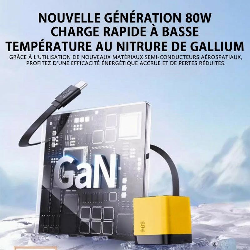 Contenu de l'emballage : 1 * Chargeur secteur 80 W à charge rapide avec câble USB-C rétractable de 80 cm