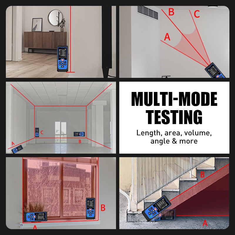 MULTI-MODE TESTING FUNCTIONS – The device supports six key measurement modes, including length, area, volume, height, Pythagorean calculations, and angle. These functions make it versatile enough to handle diverse applications, from construction and renovation to engineering and surveying.