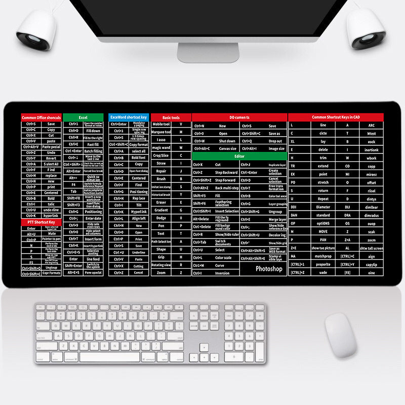 Pavé de clavier antidérapant Quick Key Super Large - avec motifs de raccourcis pour les logiciels de bureautique