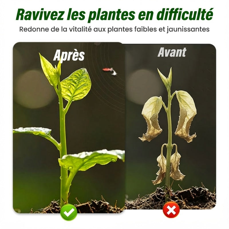 REVITALISE LA CROISSANCE DES PLANTES - Réveille la vitalité dormante en stimulant le potentiel des racines et en réparant les systèmes endommagés. Il aide vos plantes à redémarrer leur cycle de croissance, les transformant de faibles et chétives en plantes fortes et florissantes.