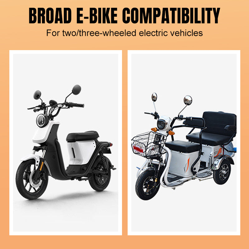 COMPATIBILITÉ UNIVERSELLE – Convient à une large gamme de véhicules électriques à deux ou trois roues, y compris ceux équipés de batteries au plomb ou au lithium. Une solution de charge pratique et flexible pour la plupart des vélos électriques et scooters courants.